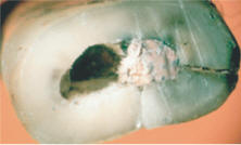 Vista al microscopio de Fisura unilateral en molar superior. En