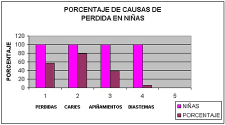 33.8 % de las niñas estudiadas presentaban apiñamiento dental; dentro de ésto