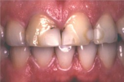 bordes incisales de los centrales a consecuencia de un problema oclusal.